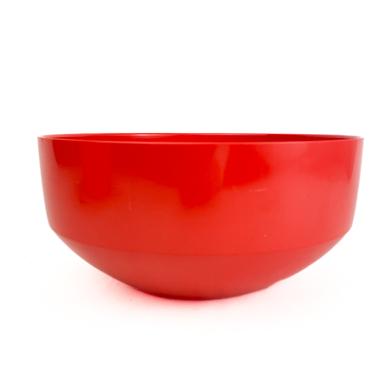 Klassische rote Retro-Schüssel von Rosti aus stabilem Kunststoff mit glänzender Oberfläche und schöner, abgerundeter Form.