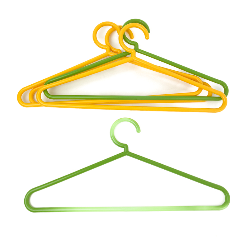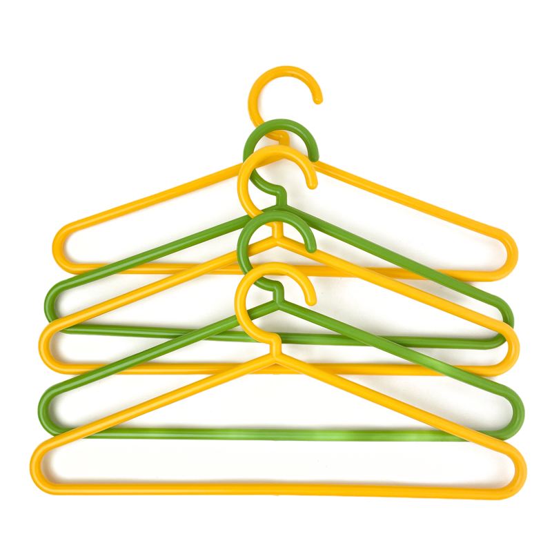 Fünf Retro Kleiderbügel in Gelb und Grün