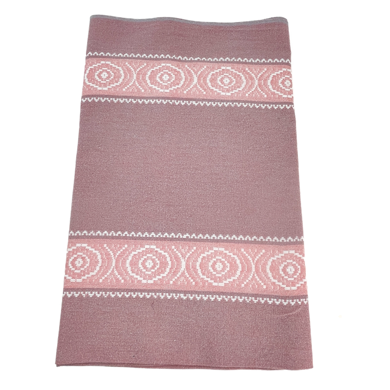 Wunderschöner langer Tischläufer in Rosaton aus Baumwolle mit geometrischem Muster in Weiß.