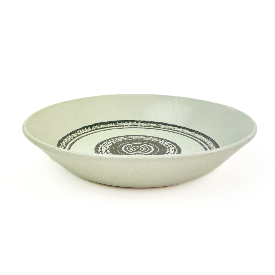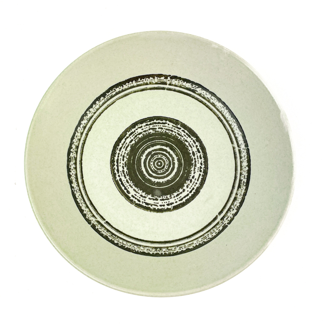 Gefertigt aus Ironstone-Steinzeug mit dekorativem Kreismuster in Schwarz auf hellem Grund.