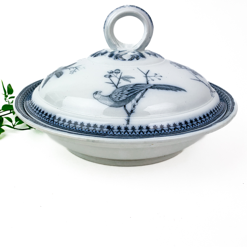 Antike Ragoutschale mit Deckel, Fasan von Villeroy & Boch.
