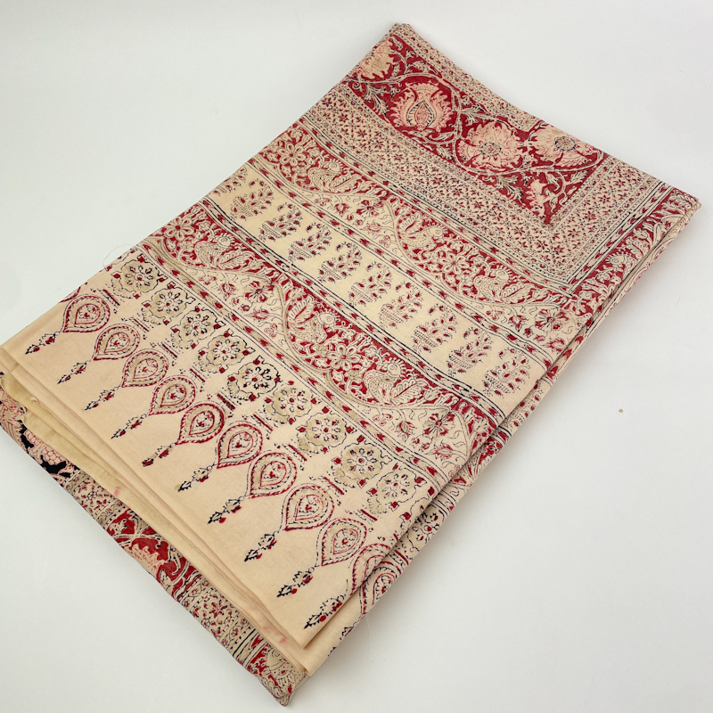 Wunderschöne Retro-Tagesdecke aus Baumwolle mit detailreichem Blumendruck in Rot-, Creme- und Schwarztönen.