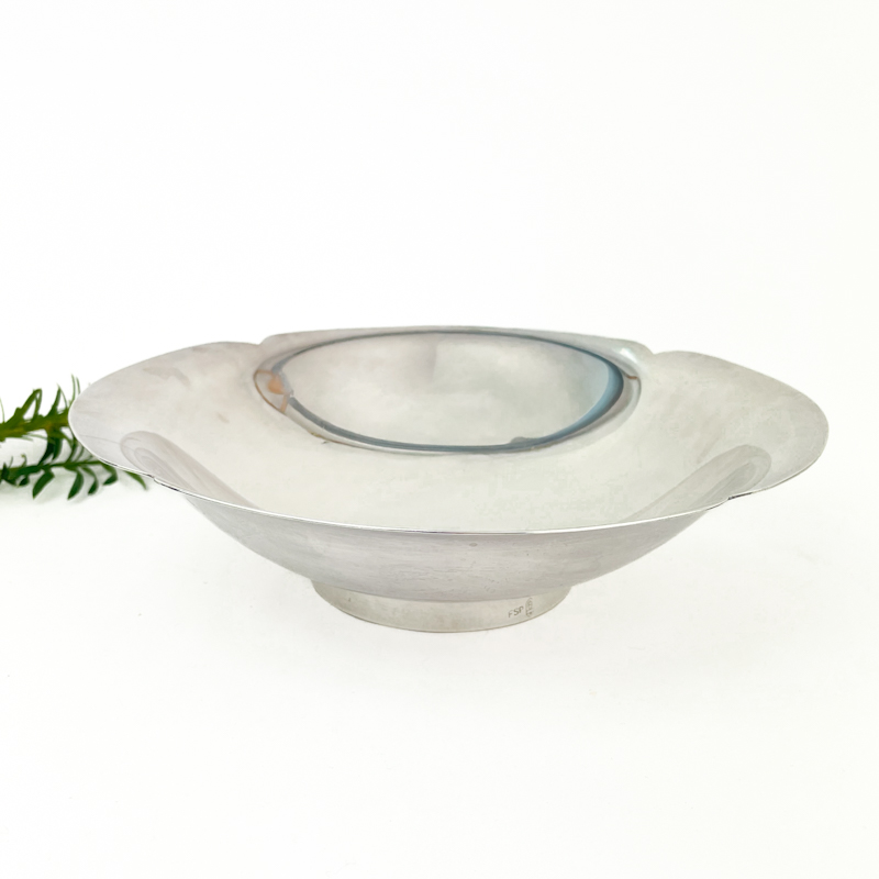 Wunderschöne Vintage-Schale aus Silberauflage mit eleganter, organischer Form und leicht geschwungenen Seiten.