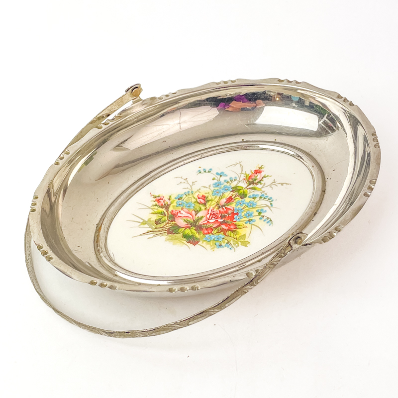 Wunderschöne Vintage-Schale aus Silberauflage mit eleganter, organischer Form und leicht geschwungenen Seiten.