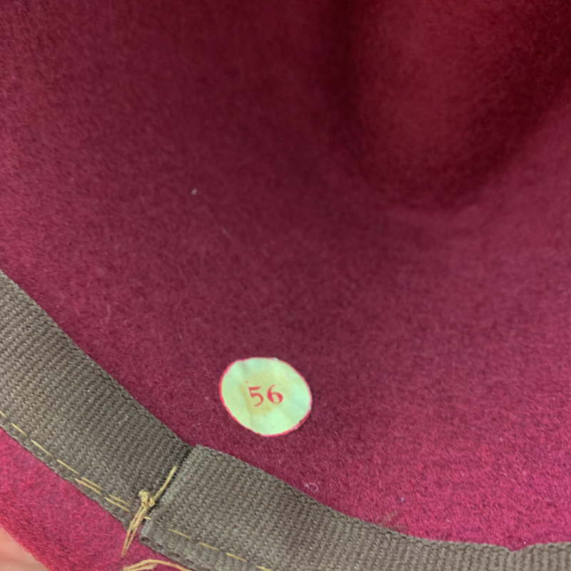 Gefertigt aus Wollfilz mit innenliegendem Band und gekennzeichnet mit Größe 56.