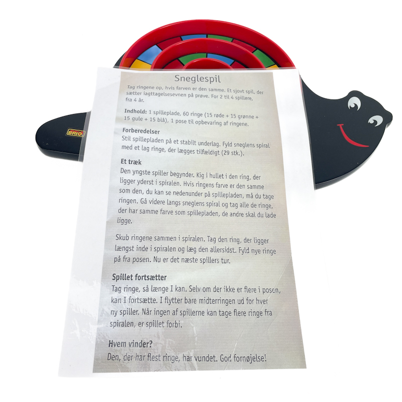 Farbenfrohes Retro-Schneckenspiel von BRIO mit klassischer Spiralbahn und farbigen Ringen in Rot, Gelb, Grün und Blau.