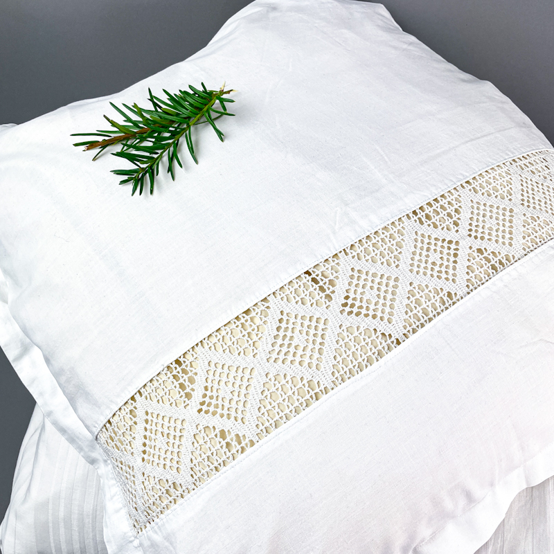 Der Kissenbezug zeigt wunderschöne alte Handarbeit mit handgearbeitetem Einsatz.