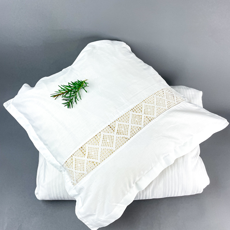 Wunderschönes Vintage-Bettwäsche-Set aus reiner Baumwolle, mit einem Deckenbezug aus klassischem weißem Damast.